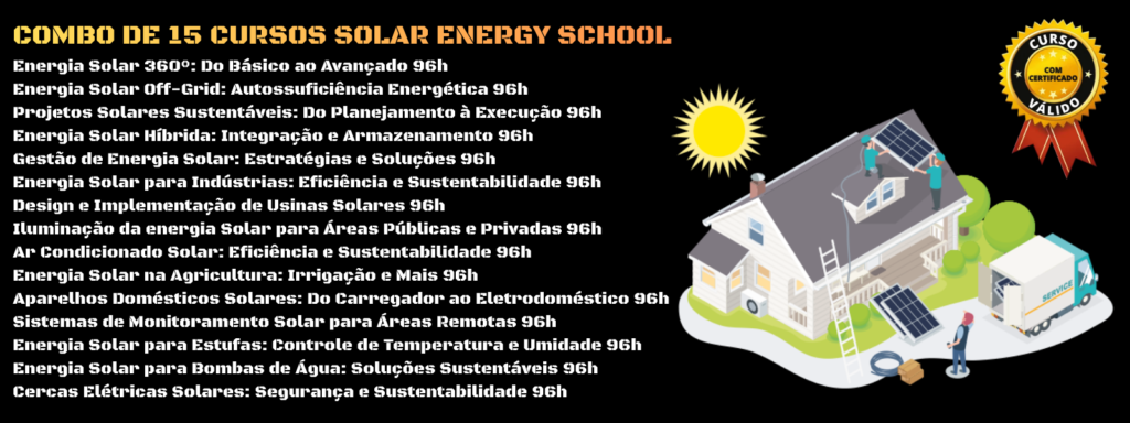 COMBO DE 15 CURSOS SOLAR ENERGY SCHOOL Energia Solar 360°: Do Básico ao Avançado 96hEnergia…